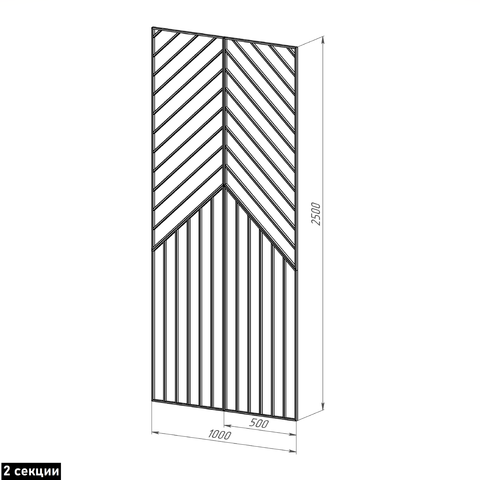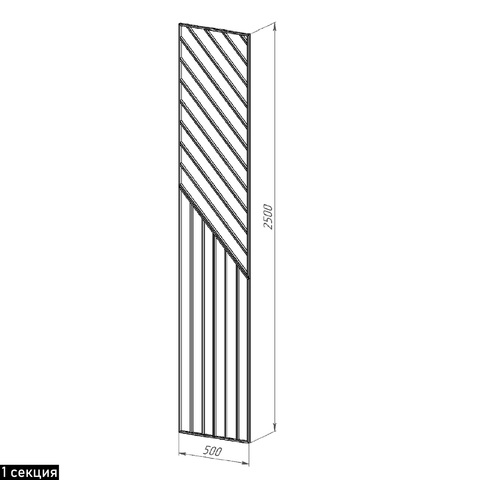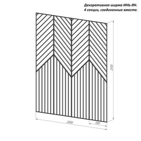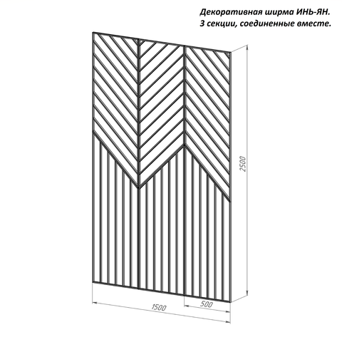 1 секция ЧЕРНАЯ 50х250, декоративная ширма ИНЬ-ЯН напольная/ подвесная к потолкам h251-290см, металл